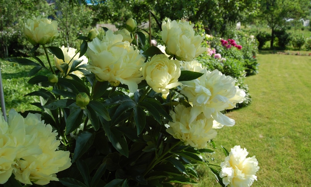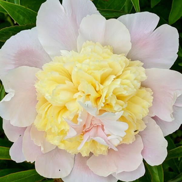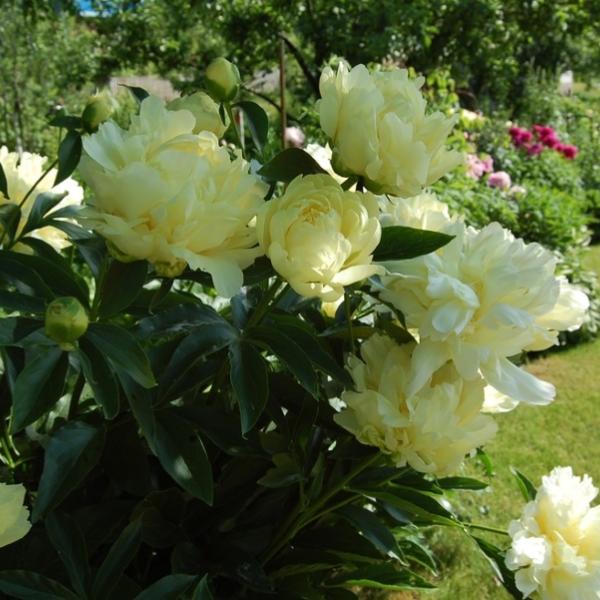 Пион Прима Вера (Paeonia Prima vera)- Сорт относится к группе анемоновидных травянистых пионов. Многолетнее корневищное растение с темно-зеленой блестящей листвой. Цветки крупные. Внешние лепестки сливочно-белые, чашевидные. Центральные - короткие, узкие, канареечно-жёлтые, с возрастом светлеют. Аромат умеренный.