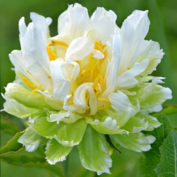 Эксклюзив! Махровый, взбитый кремовый шар лежит на зеленых широких нижних лепестках. Очень модное и востребованное сочетание белого с зеленым.Окраска, размер и форма цветка, присущая сорту, полностью проявляется на 3-4-й сезон цветения. .