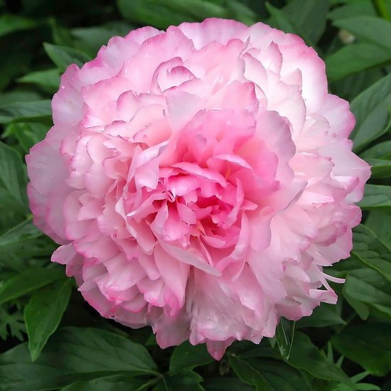 Сочный темно-розовый оттенок восхитительно ложиться на хрупкие, деликатные лепестки бутона, которые при раскрытии светлеют, а по краям появляется тонкая нежная розовая кайма. Благодаря этому пион Джокер еще называют цветком-хамелеоном.