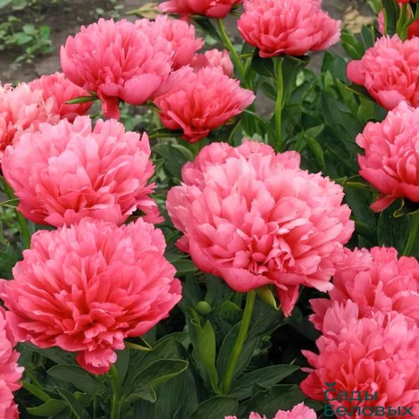 Махровый бомбовидный. Цветок диаметром 14 см, изумительного тёмно-оранжево-розового тона, редкого для пионов, при отцветании переходящего в лёгкий абрикосово-оранжевый.