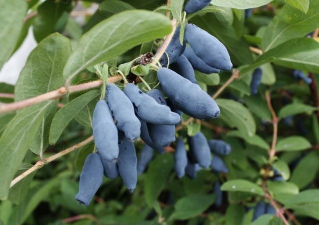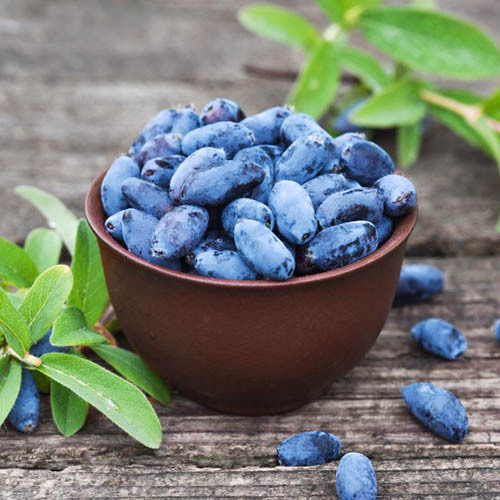 Плодоносит позднее традиционных сортов: с конца июня практически до конца июля!!! Ягоды крупные, длиной до 3см, часто до 1см в диаметре, весом до 3гр и более(!), удлинённо-овальной формы, сине-фиолетовые, мясистые, с очень плотной кожицей. Вкус шикарный, сладкий с приятной кислинкой, абсолютно без горечи. Заметный ягодный аромат. Осыпаемость отсутствует: ягоды висят на кустах даже после листопада! Длительное плодоношение не только позволяет продлить время потребления крайне полезной и невероятно вкусной ягоды, но и многократно увеличивает ее рыночный потенциал.