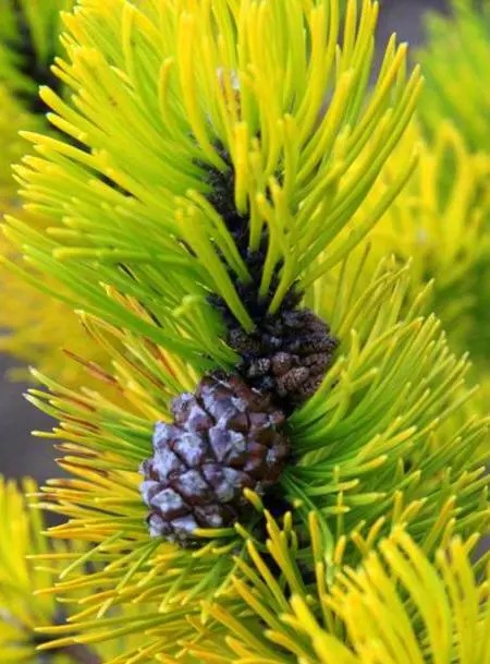 Сосна горная Зюндерт — карликовый сорт горной сосны. Интересен тем, что летом хвоя ярко — зеленого цвета с желтыми кончиками, а осенью полностью окрашивается в желтый цвет.