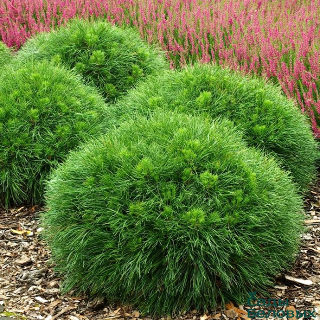 Очаровательный оригинальный, карликовый сорт, имеющий шаровидную форму заслуживает самого пристального внимания садоводов. Крона формируется симметричная, плотная, густая, сначала шаровидная, но вскоре становится уплощенно-шаровидной или овальной со сглаженной верхушкой. Высота до 1,5 м, ширина 1,2 м. Хвоя длинная темно-зеленая тонкая не жесткая, немного подкрученная, плотно расположенная на побегах. Скелетные побеги короткие, толстые, многочисленные, умеренно ветвятся, плотно прилегают друг к другу, разрастаются равномерно, отходят от центра под углом, направлены в стороны и вверх.