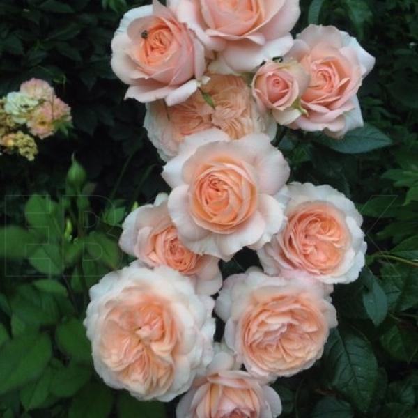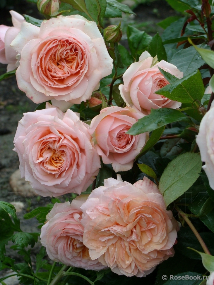 Цветки диаметром 9-12 см, махровые (более 41 лепестка), лососёво-оранжевые с розовыми оттенками.