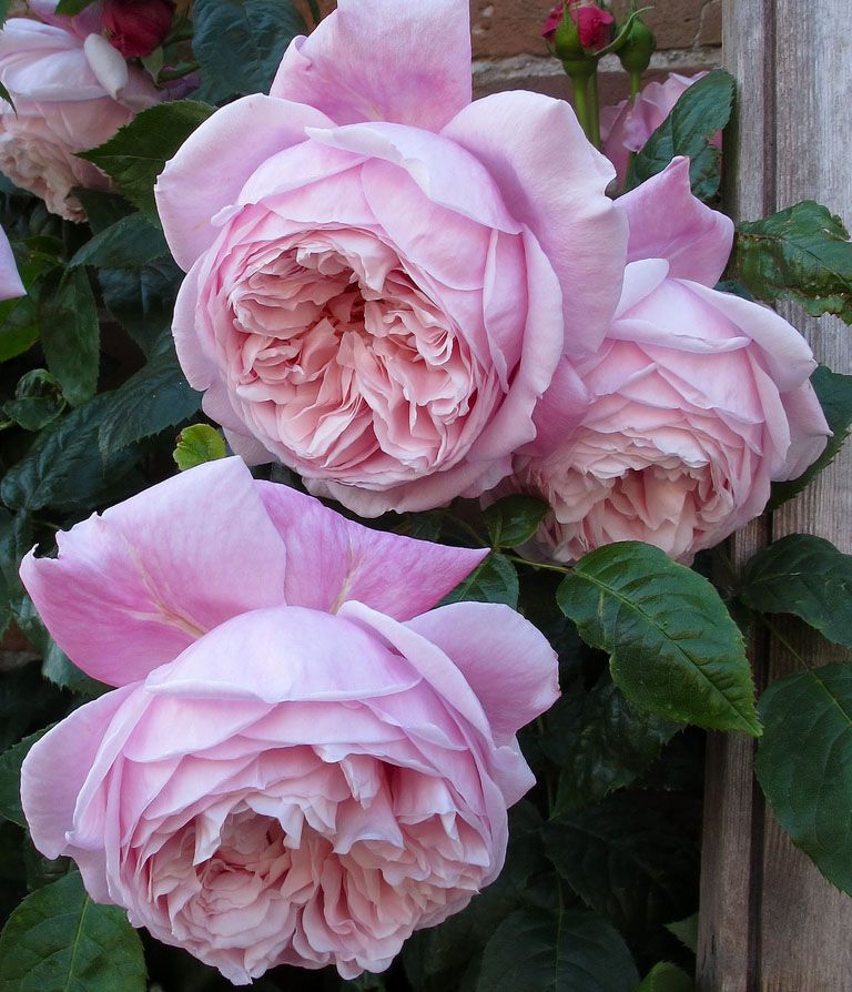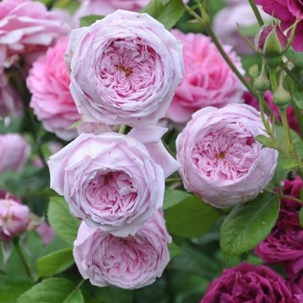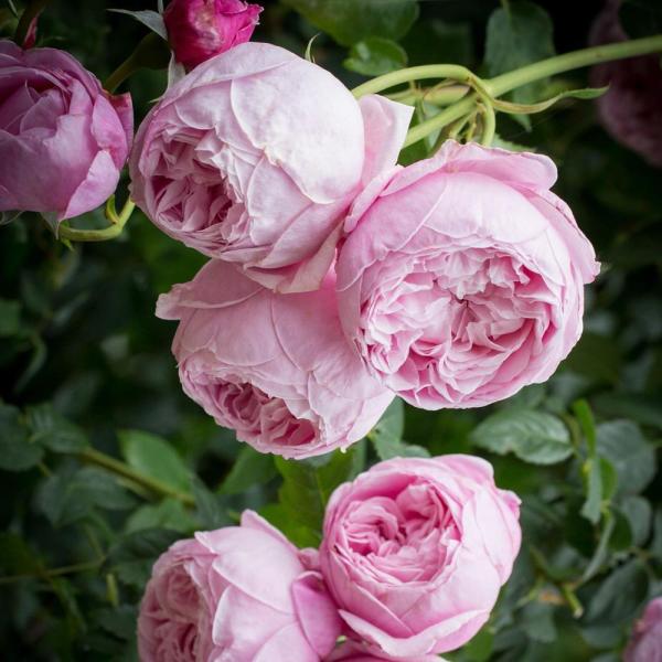 Сорт, обладающий настоящим шармом старинных роз, с красивыми крупными цветками, напоминающими уменьшенные копии Constance Spry. Они глубоко чашевидные, густомахровые, нежно-розового цвета. С возрастом приобретают сиреневый оттенок.