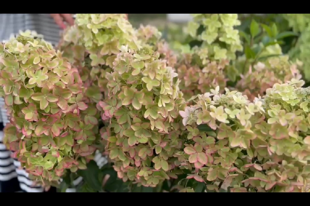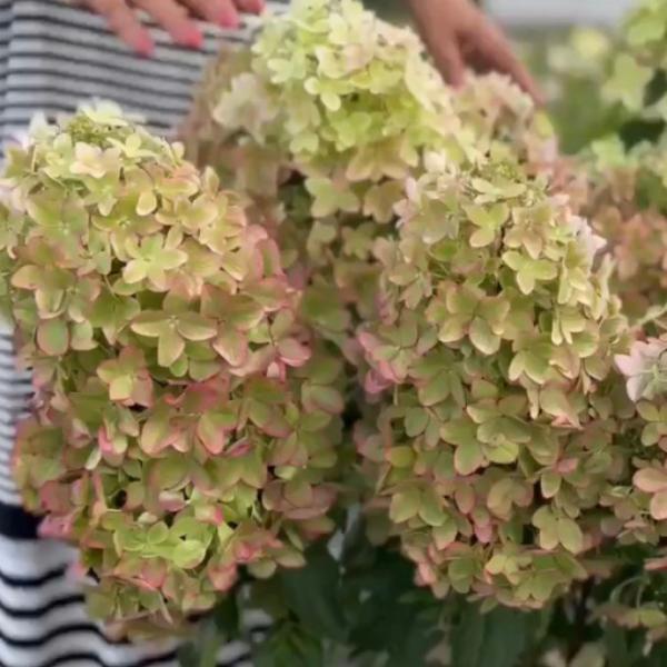 В начале цветения они лаймово-белого цвета, постепенно розовеют, начиная с кончиков лепестков, вначале образуется розовая кайма, затеи заполняется вся поверхность лепестков. Но главная особенность сорта - металлический отблеск лепестков. Такого вы не увидите больше ни у одной гортензии!