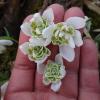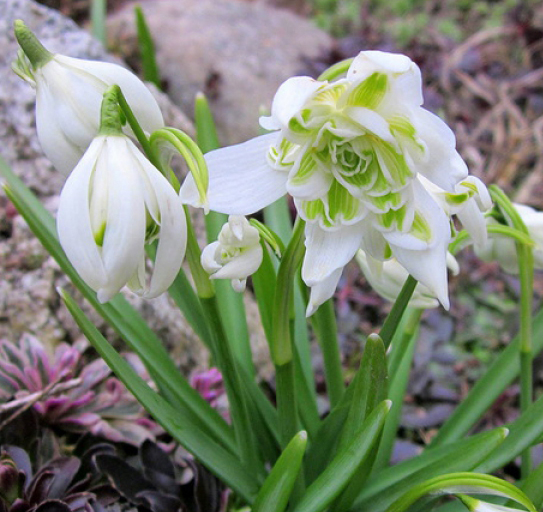 Подснежник (галантус) Флоре Плено – изысканное и изящное украшения любого сада или клумбы. Цветки достаточно крупные, белого цвета с разновидными лепестками. Внутренние лепестки мелкие, широкие, плотно прилегающие друг к другу и собранные в пучок. Наружные лепестки длинные и тонкие, расставлены в сторону.